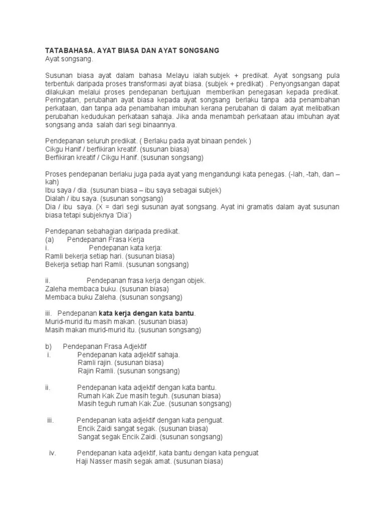 Related : Ayat Biasa Dan Ayat Songsang / Ayat susunan biasa dan ayat songsang..