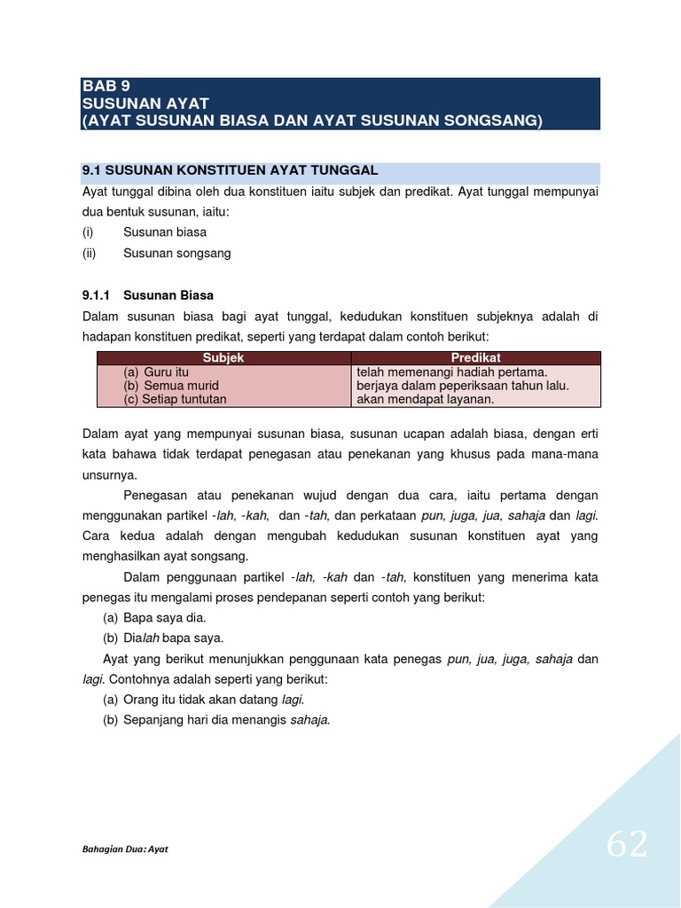 ayat biasa mempunyai susunan predikat yang mendahului subjeknya. Posted on august 22, 2019 by admin. (subjek + penerang subjek) + (predikat + penerang predikat.) ayat songsang apabila berlaku pendepanan predikat. Proses pendepanan berlaku juga pada ayat yang mengandungi kata penegas. Soalan 1:tukarkan setiap ayat susunan biasa di bawah kepada ayat susunan songsang tanpa mengubah maksud asalnya.
