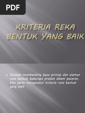 Kriteria Reka Bentuk Yang Baik - Reka bentuk (mal., sin.) atau desain dé.sain (ind.) biasa diterjemahkan sebagai seni terapan, seni bina, dan berbagai pencapaian kreatif lainnya.
