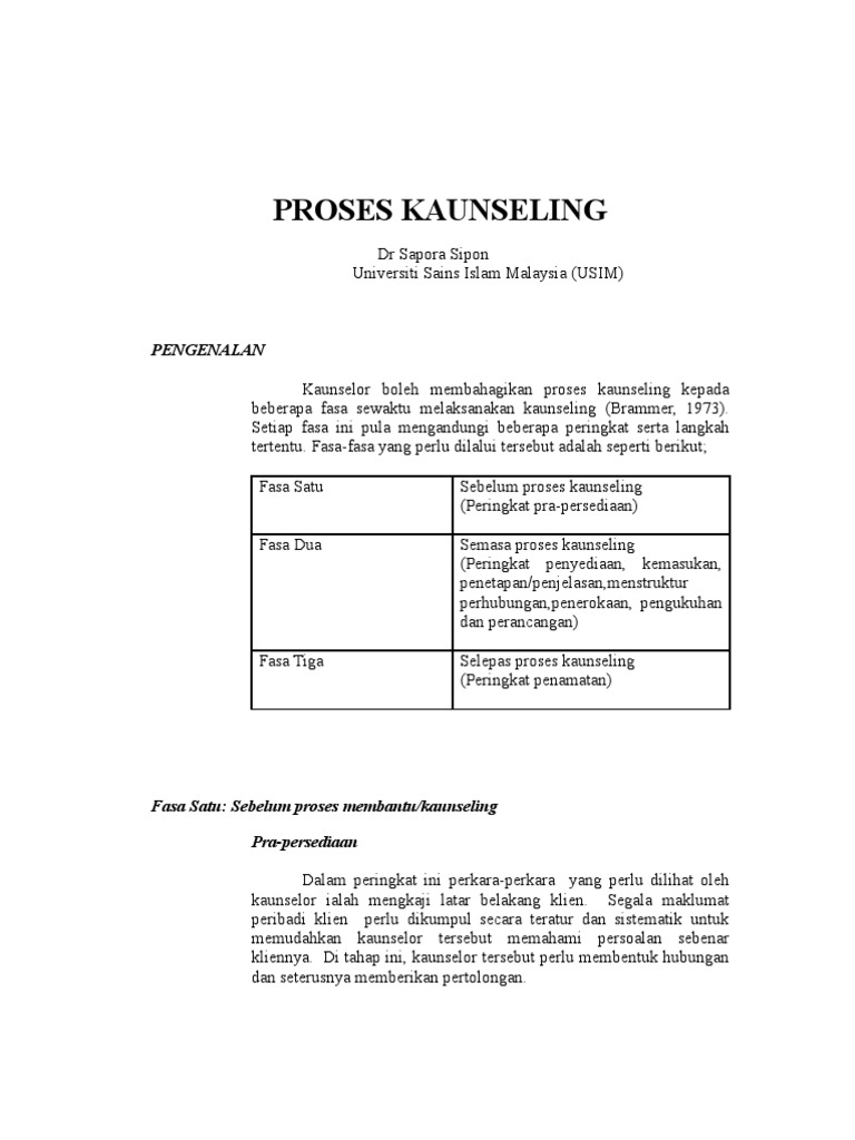 Konseling kelompok merupakan suatu proses hubungan interpersonal antara seorang konselor atau beberapa konselor dengan konseling kelompok memfokuskan diri pada proses interpersonal dan strategi penyelesaian masalah yang berkaitan dengan. Konseling kelompok (dasar dan profil). Proses kaunseling dr sapora sipon universiti sains islam malaysia (usim). Sapora sipon,ruhaya hussin,2013,teori kaunseling dan psikoterapi,universiti sains islam malaysia. Jual bukuâ spora bonus :â bonus pembatas buku penulis :â alkadri (@alkadrii) penerbit :