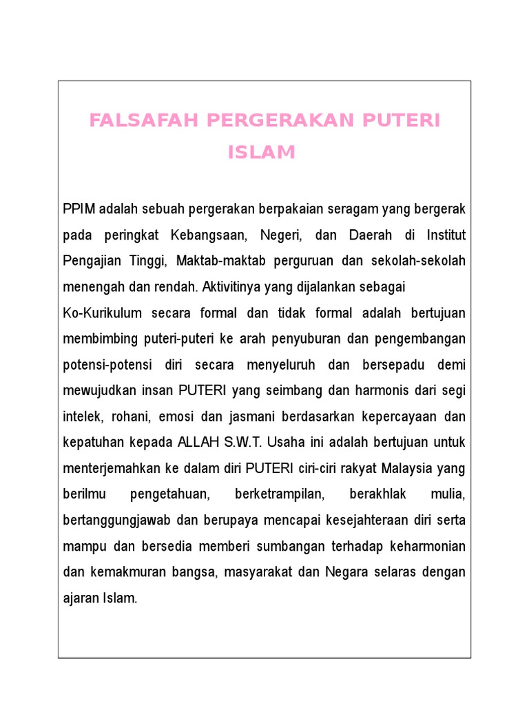 Buku Log Puteri Islam Cute766 from i0.wp.com Selamat datang ke laman blog persatuan puteri islam malaysia sekolah kebangsaan datuk kelana, tapah 35000, perak darul ridzuan. Persatuan pandu puteri malaysia is the national guiding organization of malaysia. Hari puteri disambut pada 17 jun setiap tahun bagi memperingati kelahiran ppim dan ia pertama kali diadakan di peringkat kebangsaan pada 20 jun 1987. Taman seri pagi 70450 seremban, negeri sembilan darul khusus. 1 orang wakil daripada : Objektif pergerakan puteri islam malaysia di peringkat institusi pengajian tinggi bertujuan, disamping memperkukuhkan segala apa yang termaktub di dalam 4.1 di … Anak minta gambar logo pergerakan puteri islam atau ppi yang kosong tanpa warna. Contoh buku log pandu puteri :